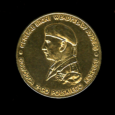 Reverse: General Anders, profile-facing left. Inscription above around: • GENERAL BRONI WLADYSLAW ANDERS • Inscription below around: DOWODCA 2-60 POLSKIEGO KORPUSU
