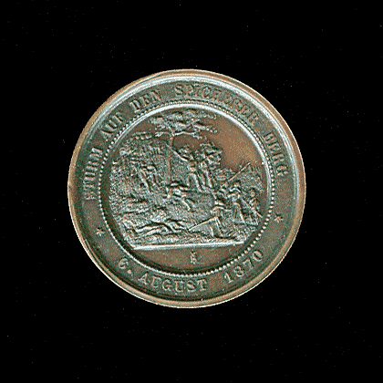 The battle of the regiments from different German states against the Frenchmen defending the Höhenzug with Spichern had high losses on both sides: on French side one counted 4078 dead and wound and missing, of the German regiments 4817 men, including 800 dead. Soon after 1870 these soldiers were buried in the honor valley, and on the battleground the first hero monuments were developed for the regiments involved. Mostly at the anniversaries of the battle from 6 August further monuments were inaugurated in the framework by solemn ceremonies, and soon the Spicherer heights developed as a national place of pilgrimage, where visitors could, as with the stations of the cross, go from one Monument to the other.
