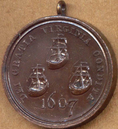 Obverse: DEI GRATIA VIRGINIA CONDITA / with THREE SMALL SHIPS /1607