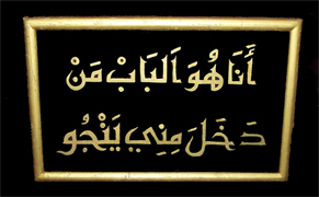 Second a rather modern and hand made large framed Arabic inscription, hung over a door.